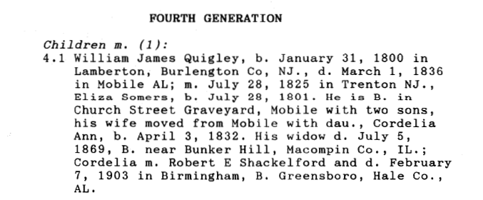 Julia Ann Quigley Ancestors